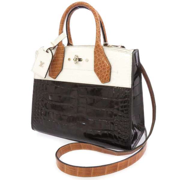 ルイヴィトン ハンドバッグ クロコダイル シティ・スティーマーPM LOUIS VUITTON ヴィトン バッグ ブラック 黒 ホワイト 白【安心保証】【中古】